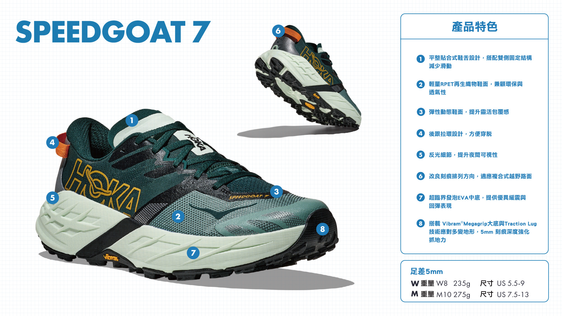 全新升級成「超臨界發泡中底」,回彈表現全面提升!同時延續一貫值得信賴的貼合度與抓地力,並優化後跟與鞋領口的舒適度。透過注入嶄新科技,SPEEDGOAT 將再次鞏固其作為「經典越野鞋」的傳奇地位,成為山徑愛好者心中的不敗選擇。